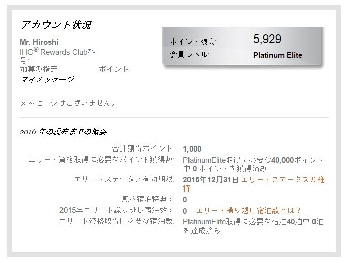 IHGで登録すると1000ポイント貰えるキャンペーンをやってるので早速登録をしてみました。