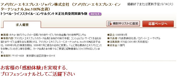 アメックストラベルデスクの求人がリクナビNEXTに出ていたのでちょっと目を引きました。