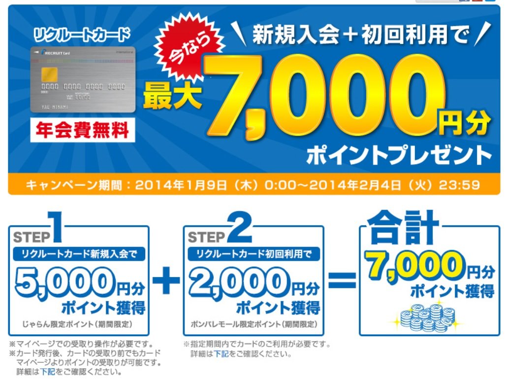 2014年2月4日までの期間限定で最大7000ポイント貰えるキャンペーンが実施されていますが、これとは別に