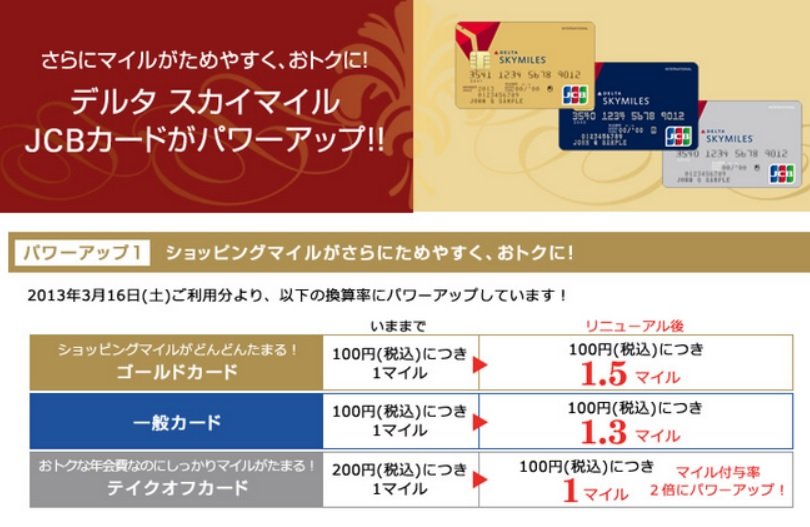それが2013年3月からリニューアルされてゴールドカードだと100円で1.5マイルと通常のクレジットカードだと最高峰の還元率となっています。