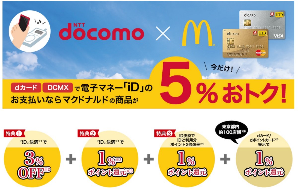 dカードに付帯するiDでの支払いだと商品の支払いが3%オフに100円マックだと97円ってことですね。