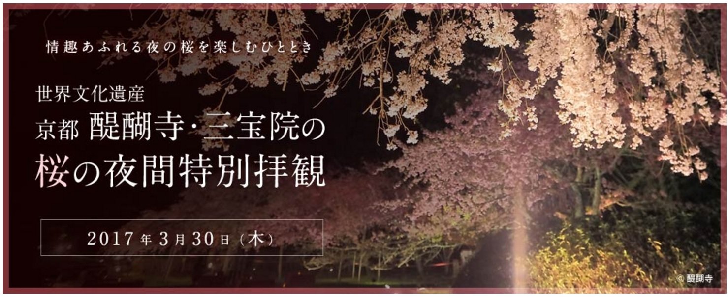2017年3月30日に世界遺産の醍醐寺で夜の特別参拝が開始されます。